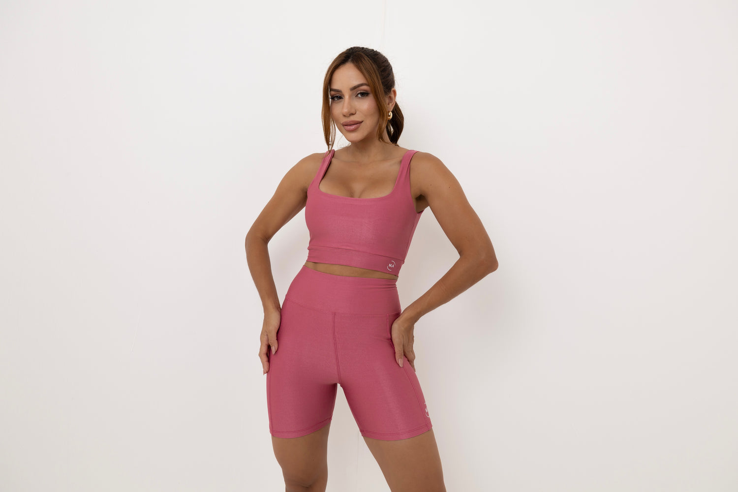 Conjunto Esportivo short com bolso e top de alça cruzada