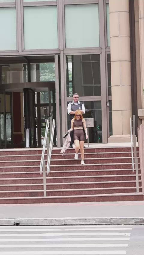 Conjunto Power Marrom - Top de alta compressão e short com cós alto para Máxima Performance