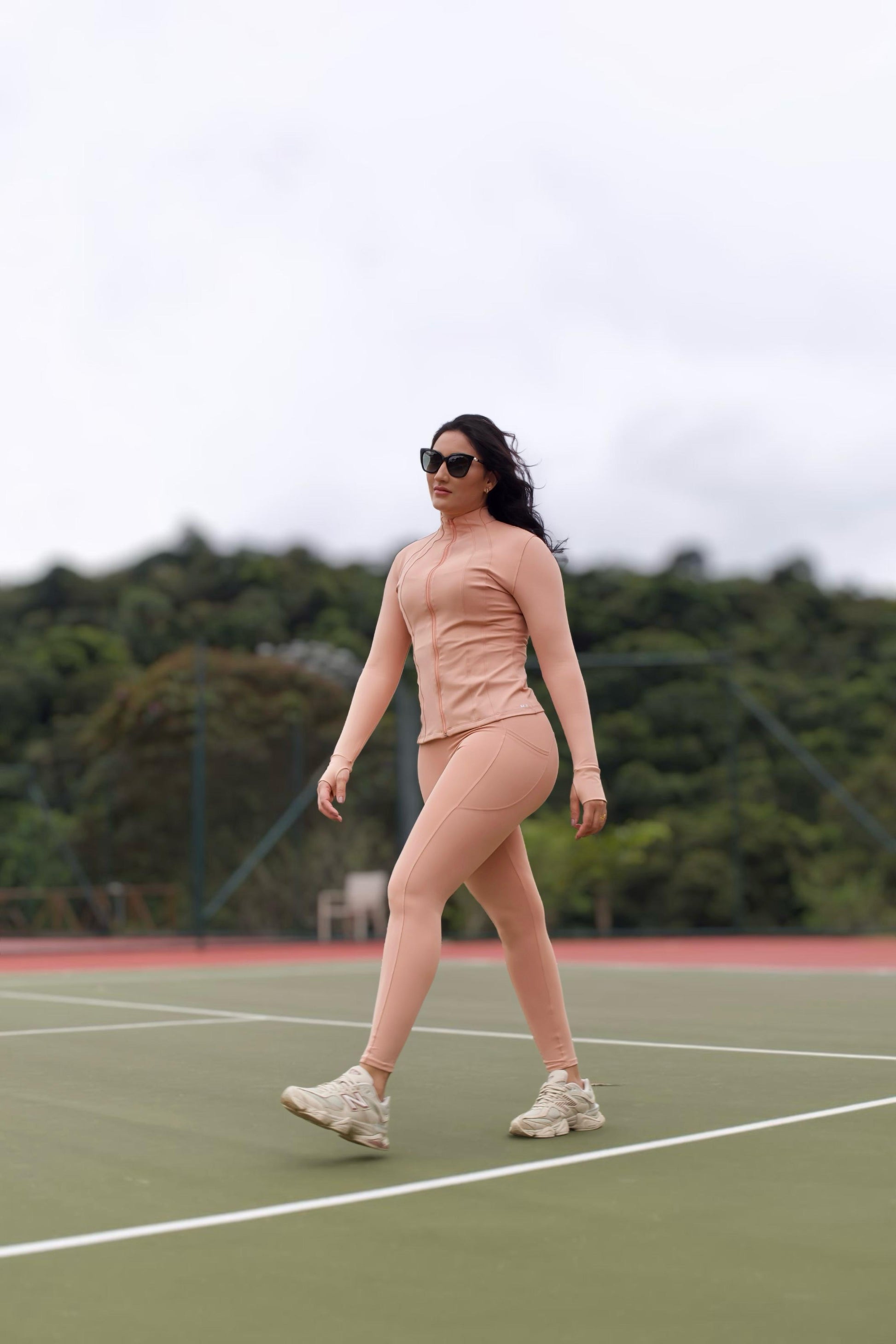 Eleve seus treinos com estilo e conforto com o Conjunto Fitness da M.A. Activewear. Composto por calça legging de média compressão, top estruturado e jaqueta com gola alta, confeccionados em tecido Nakay que oferece toque macio e elasticidade ideal para acompanhar sua rotina com liberdade e performance. A jaqueta proporciona proteção térmica e a legging modela o corpo com segurança, enquanto o top oferece sustentação com elegância. Disponível na versátil e sofisticada cor nude.